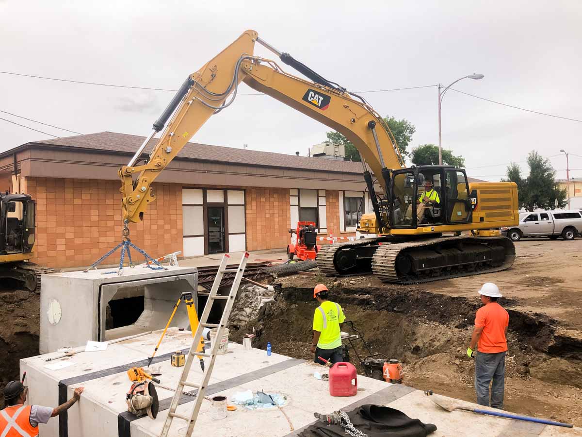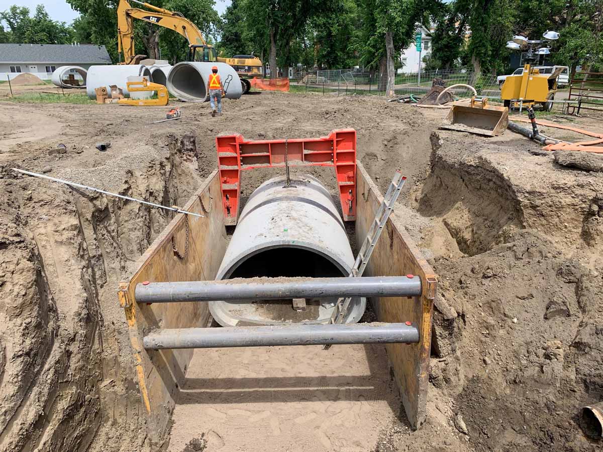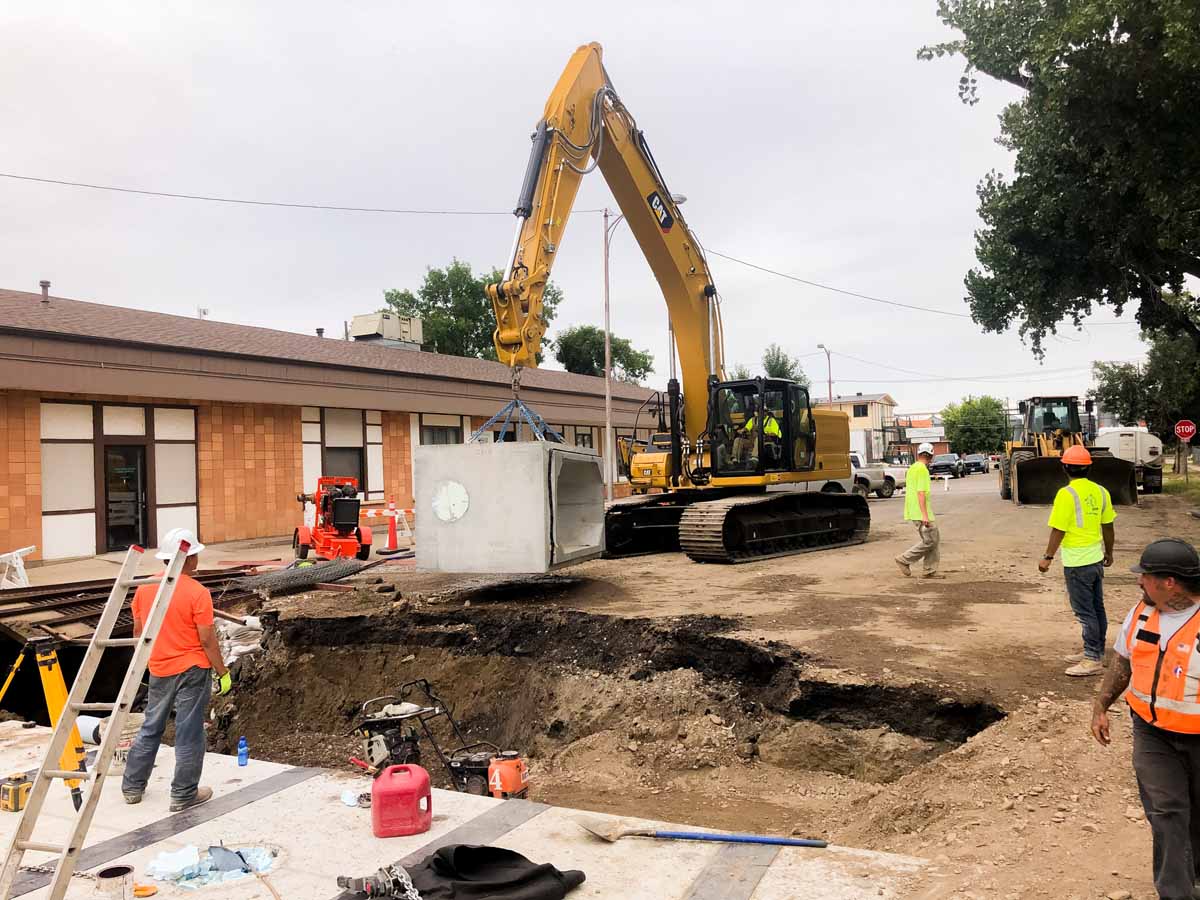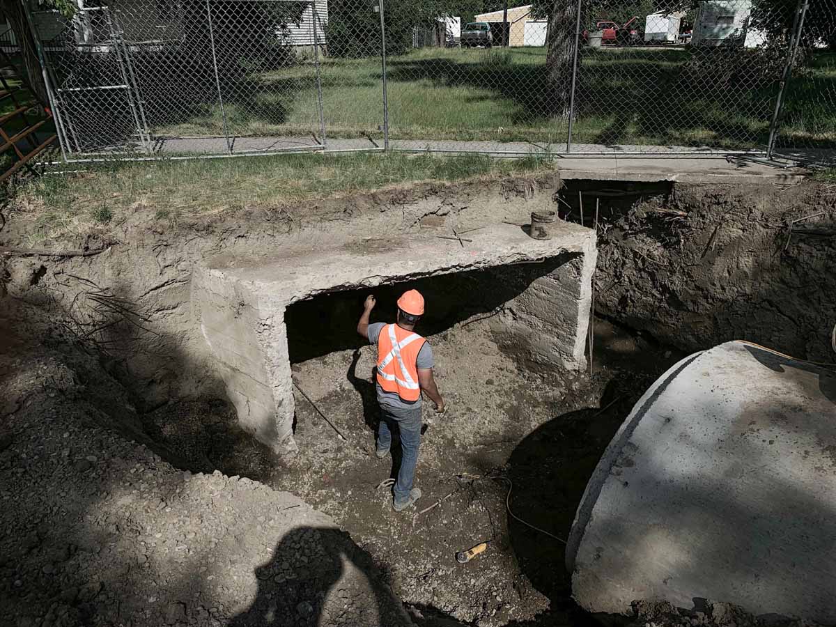 In 2016 the city of Havre advertised for bids on the Bullhook Stormwater Improvement project, a project that replaced the main stormwater conveyance through Havre. An out-of-state contractor was the low responsive bidder. In turn, they entered into a contract with the City of Havre and proceeded with the project. After struggling with the execution of the project, they pulled off. The City of Havre then went back to Lakeside Excavation, a bidder on the original project with the capabilities and knowledge to finish the project. Lakeside excelled in the tight quarters of this project, setting a 20,000-pound box culvert that is 10 feet wide in an easement no wider than 20 feet, with existing utilities both below ground and overhead. After completing this work, there were no more open holes in the streets and right of ways. Neighborhoods started to return to normal after up to 6 years of open holes in the streets.