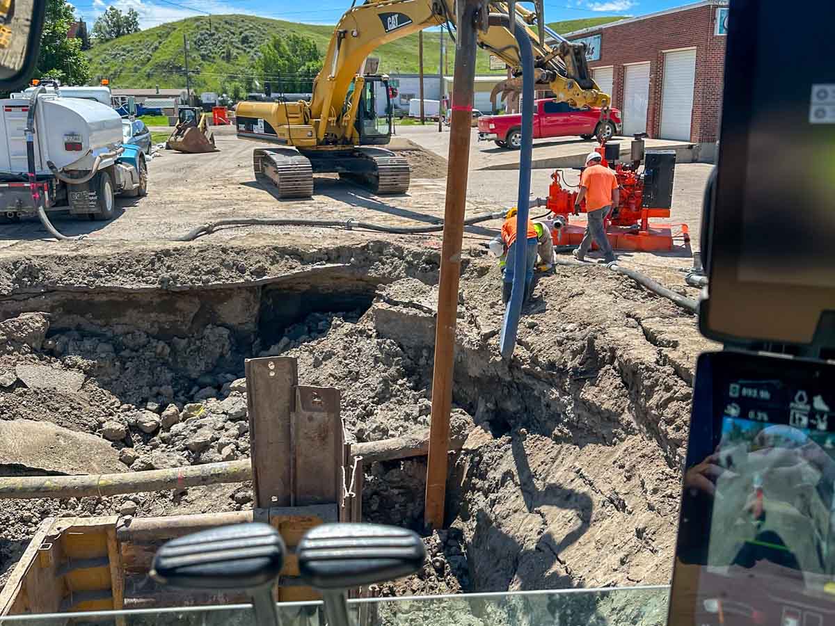 The $230,000 upgrade centered on a massive sewer bypass operation, successfully managing two separate bypass points that accounted for 25% of all municipal flows for the entire city. Navigating this high volume required flawless execution to maintain service reliability while working in a very soft subbase. The project was further complicated by the need for vacuum dewatering and precision excavation beneath high-voltage electrical lines and a high-pressure gas main. By mitigating these multi-layered risks, our crew ensured a stable, long-term upgrade to Havre’s essential wastewater infrastructure.